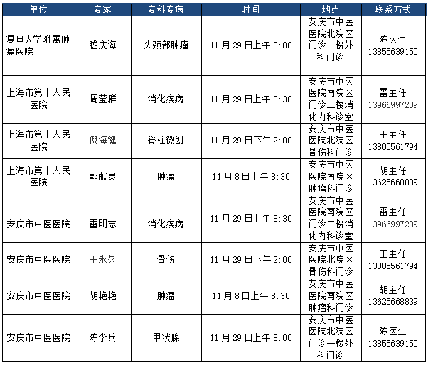 本月,上海知名医院专家团将继续在安庆市中医医院坐诊,促进医院专科建设和医疗技术能力提升,更好地为广大群众健康服务。安庆市中医医院相关科室专家现场陪同。