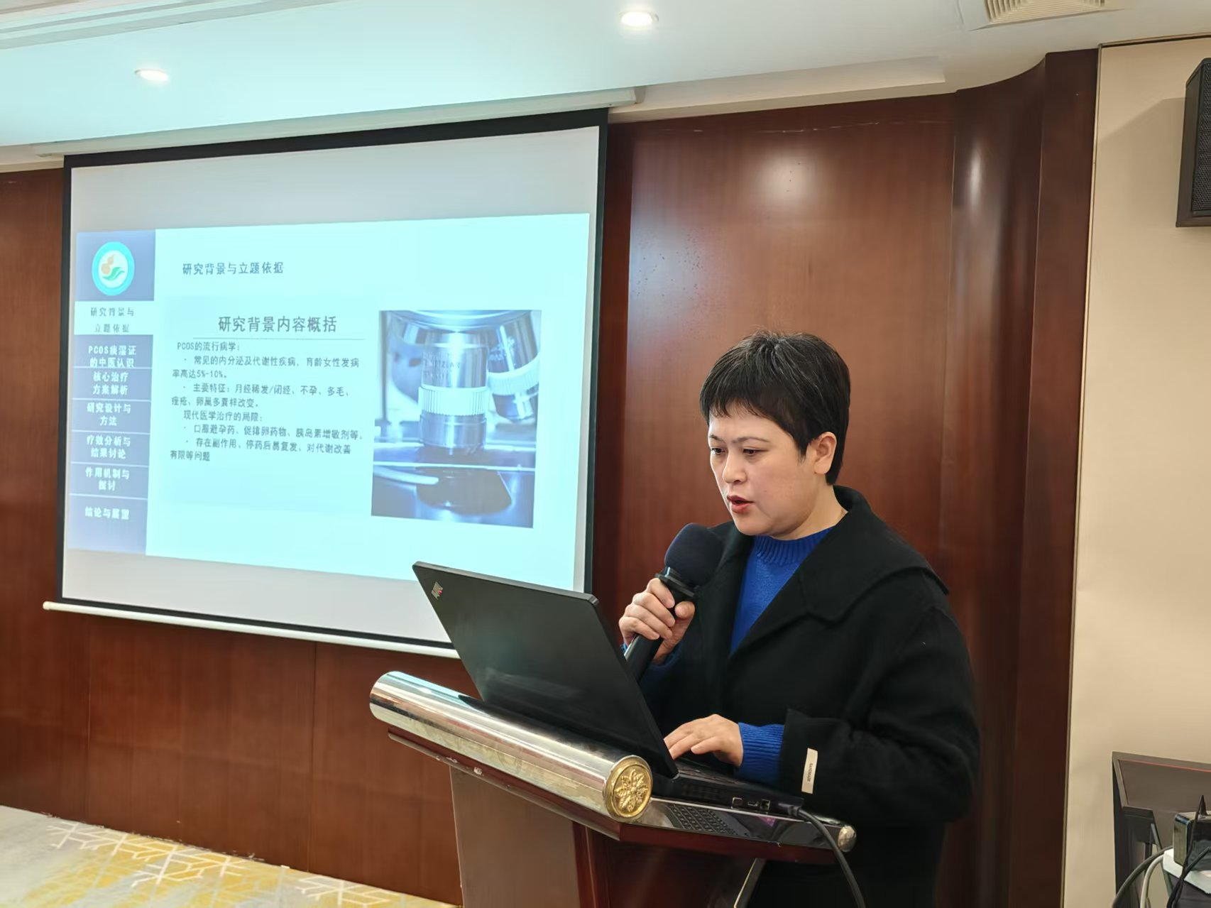 安庆市中医妇科质控中心副主任委员吴柏芬分享了《补肾调周法联合穴位埋线治疗多囊卵巢综合征痰湿证研究分析》,展示了中医综合疗法在疑难病诊治中的独特优势。
