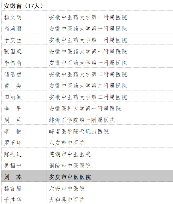 经安徽省中医药主管部门遴选推荐,国家中医药管理局审定,《国家中医药管理局关于公布2022年全国名老中医药专家传承工作室建设项目专家名单的通知》于近日下发,安庆市中医医院刘苏成功入选专家名单。至此,安庆市中医医院已有全国名老中医药专家传承工作室2个——赵荣胜名老中医药专家传承工作室、刘苏名老中医药专家传承工作室。