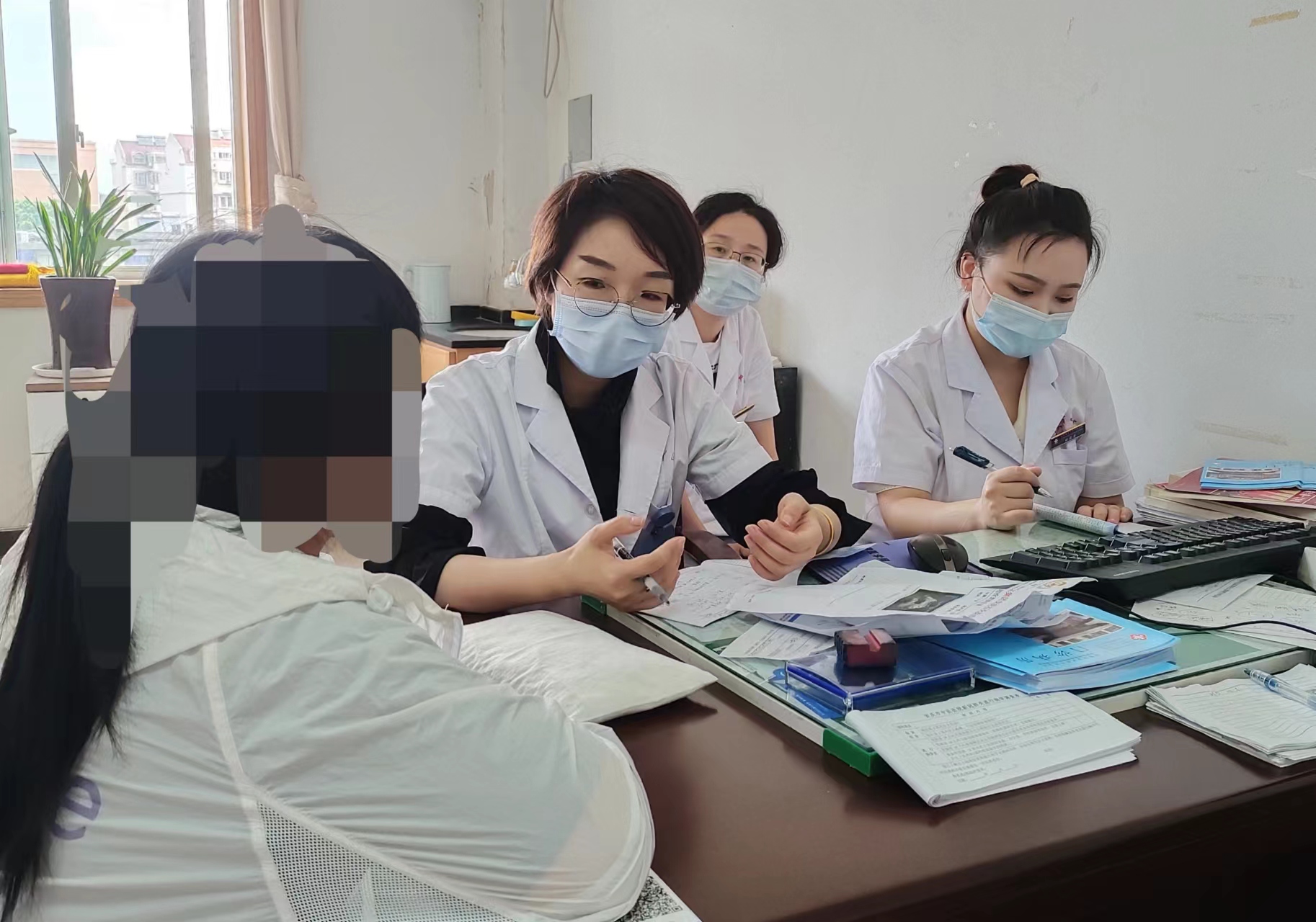 当天上午,在安庆市中医医院南院区的妇科门诊,南京鼓楼医院生殖医学中心副主任、副主任医师孔娜及生殖医学中心副主任刘景瑜为众多求诊的患者进行诊断,耐心细致地为他们答疑解惑,结合每位患者的具体情况给出相应的治疗指导方案。