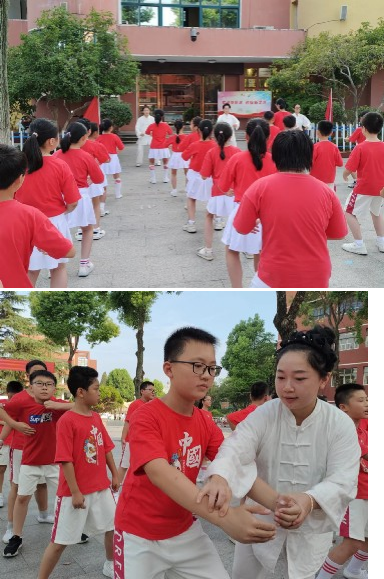一堂别开生面的体育课在市高琦小学的操场上进行。安庆市中医医院的青年志愿者向师生介绍“八段锦”的套路动作和练习要领。伴随着古典悠扬的背景音乐,学生们在医院青年志愿者的示范带领下,一招一式有模有样地认真练习了起来,聚精会神的按照招式动作进行抬手、落手等动作。青年志愿者对具体动作反复指导和演示,并不时纠正学生们不规范的动作。
