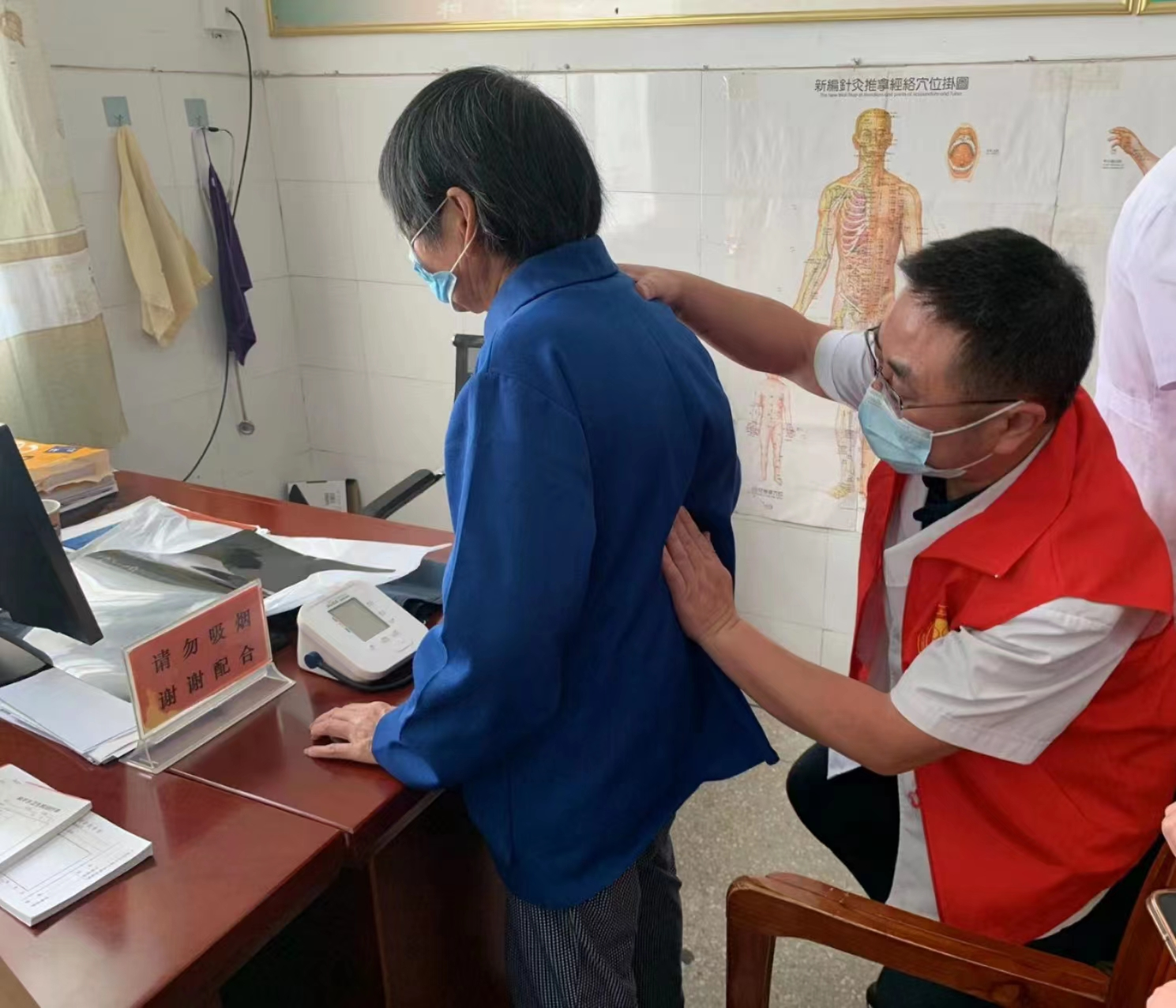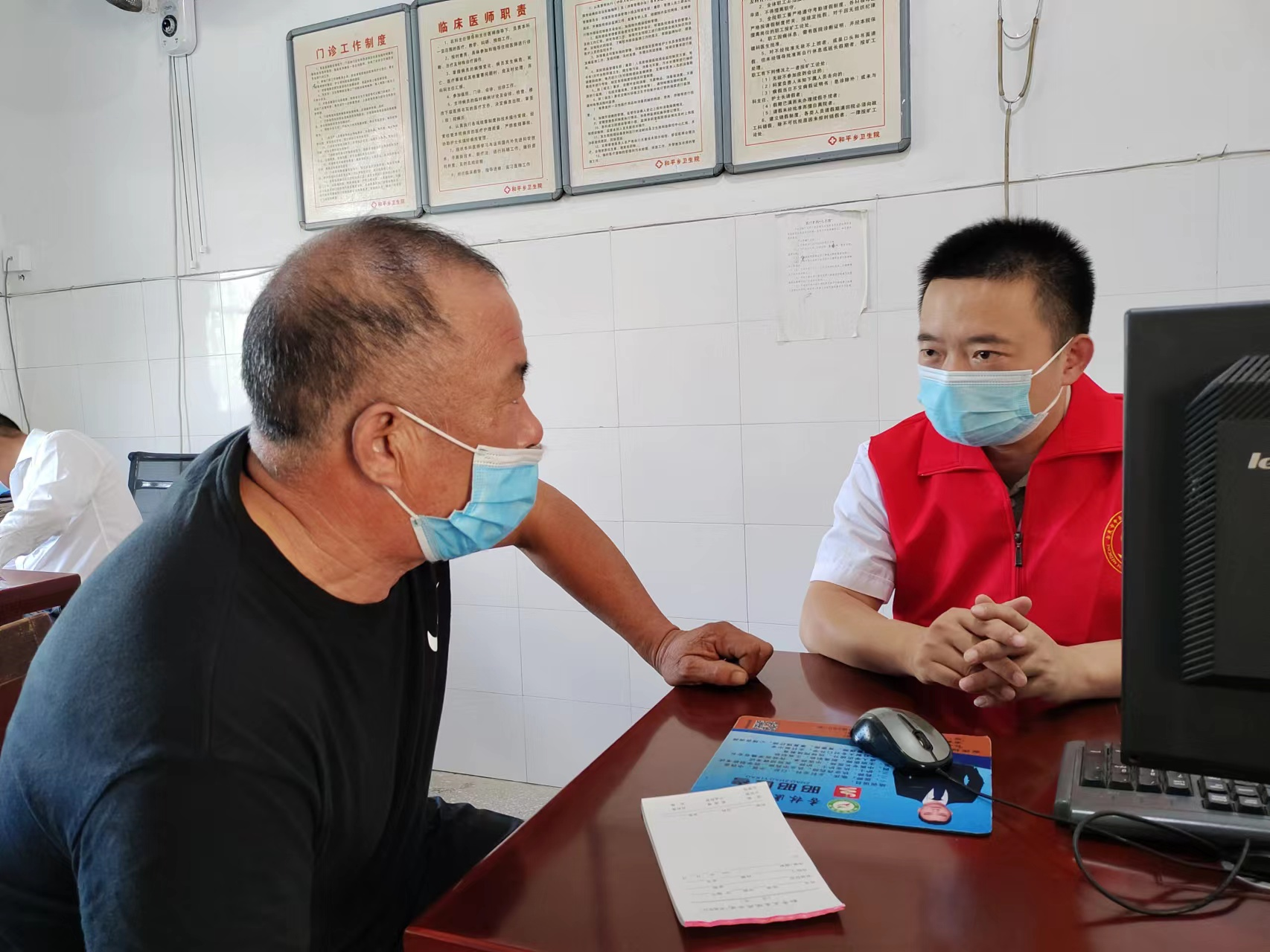 在和平乡卫生院,医院的义诊活动火热进行。内科、外科、妇科、儿科、康复科、骨伤科等多个重点临床科室的党员志愿者,现场为众多慕名而来的群众把脉问诊。他们根据不同患者的具体病情,一对一进行治疗方案的指导,并大力普及疾病预防和医疗保健知识。