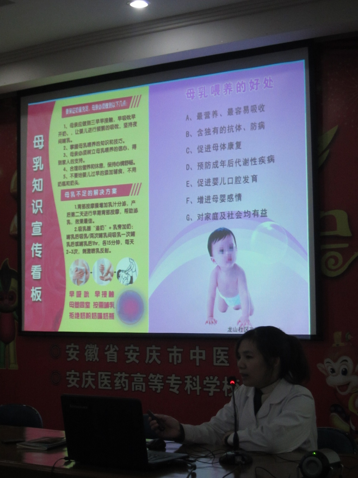 近日,龙山社区卫生服务中心举办主题为“用沟通架起爱的桥梁”家长课堂,副院长胡家柳出席,辖区内数十名婴幼儿家长聆听了讲座。社区卫生服务中心的负责人宣讲了母婴保健知识、家长与婴幼儿沟通的技巧和方法等方面的内容,让在场的婴幼儿家长们颇受启迪。