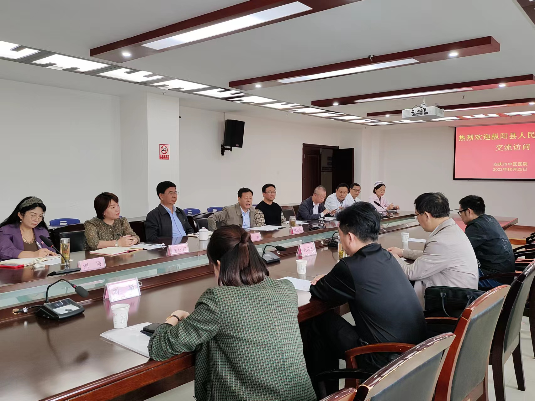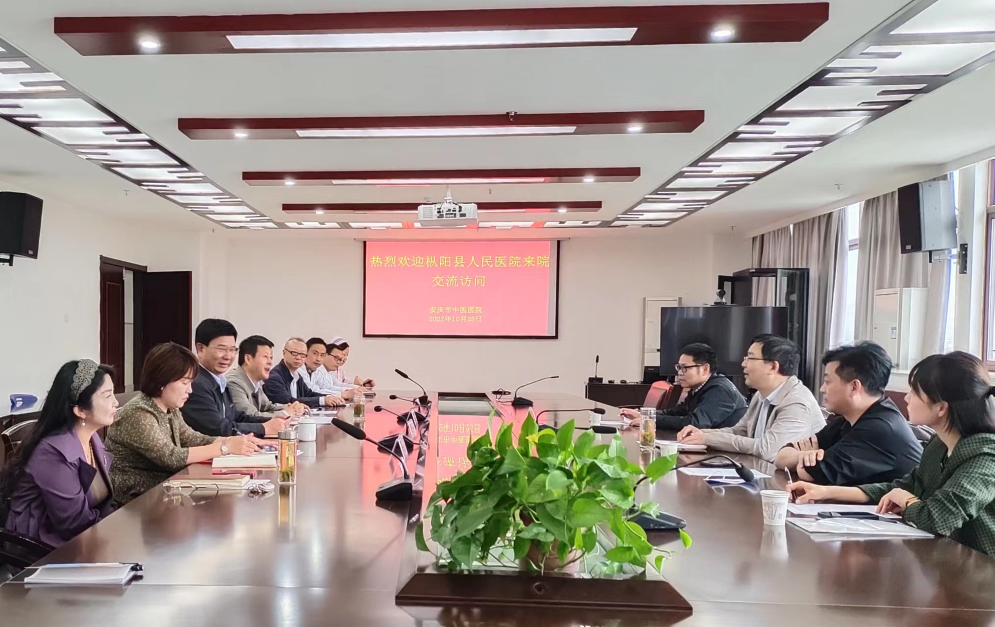 为进一步加强沟通交流,10月25日下午,枞阳县人民医院院长光国志带队到安庆市中医医院交流访问,安庆市中医医院党委书记汤洪、院长倪佳桐率医院党政班子成员热情接待了枞阳县人民医院一行,安庆市中医医院部分行政、临床科室负责同志陪同。