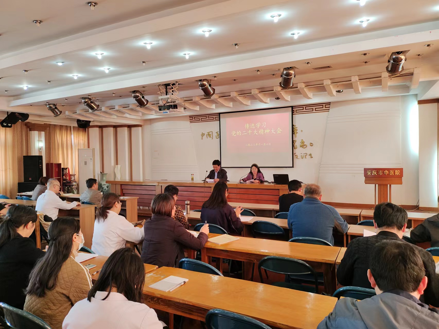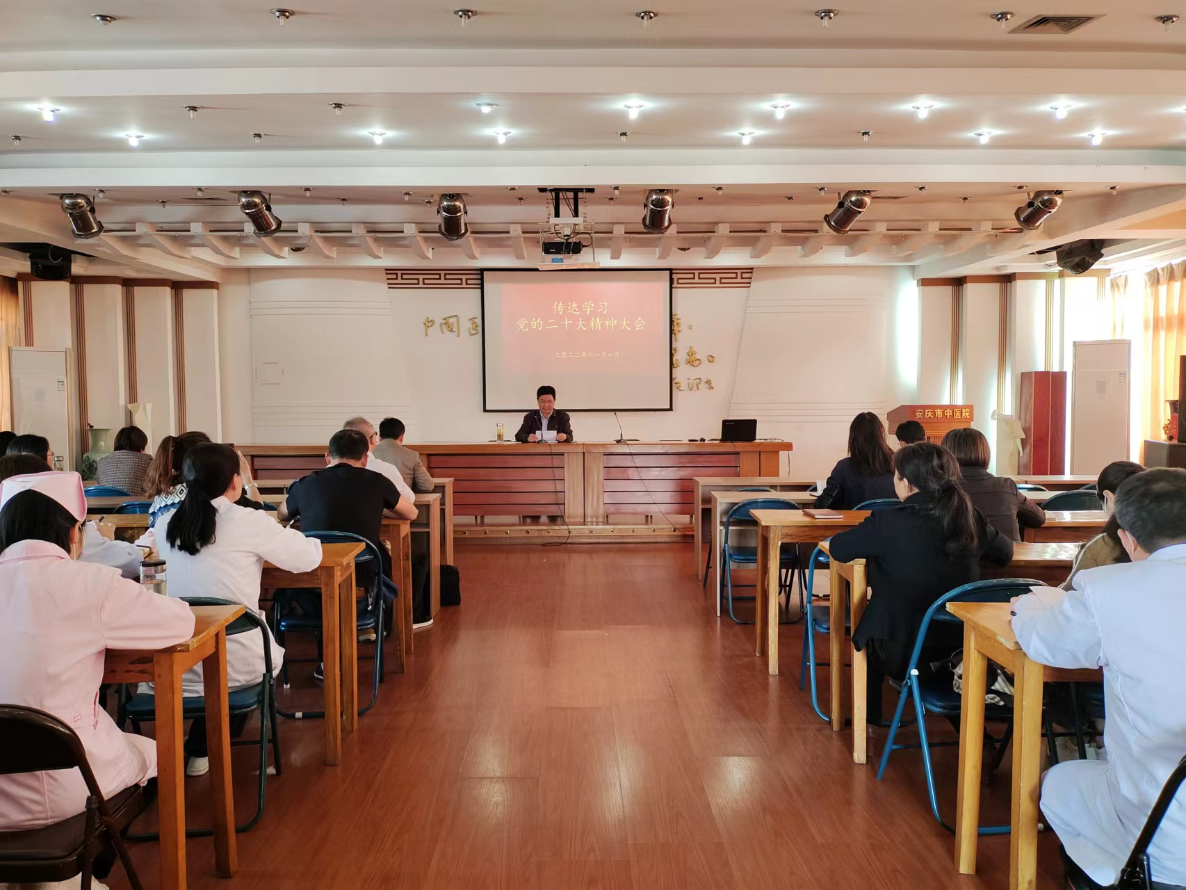 11月1日,安庆市中医医院召开传达学习党的二十大精神大会,部署全院学习宣传贯彻工作。院党政领导班子及中层以上干部参加会议。