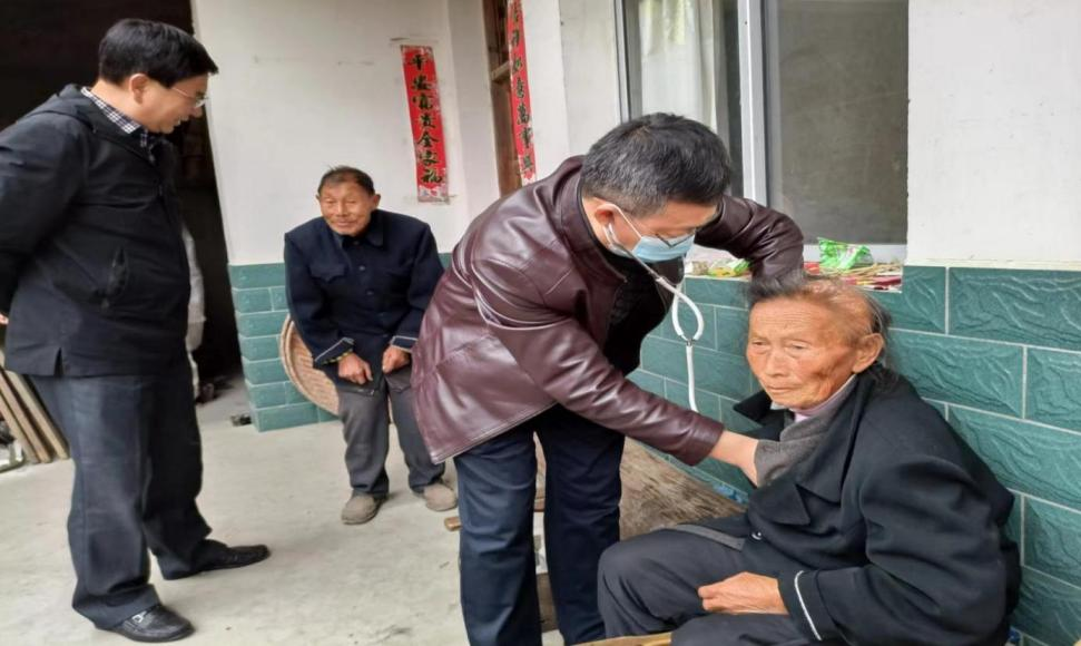 2022年11月18日,安庆市中医医院党委书记汤洪带领院领导班子成员,到岳西县和平乡和平村慰问。