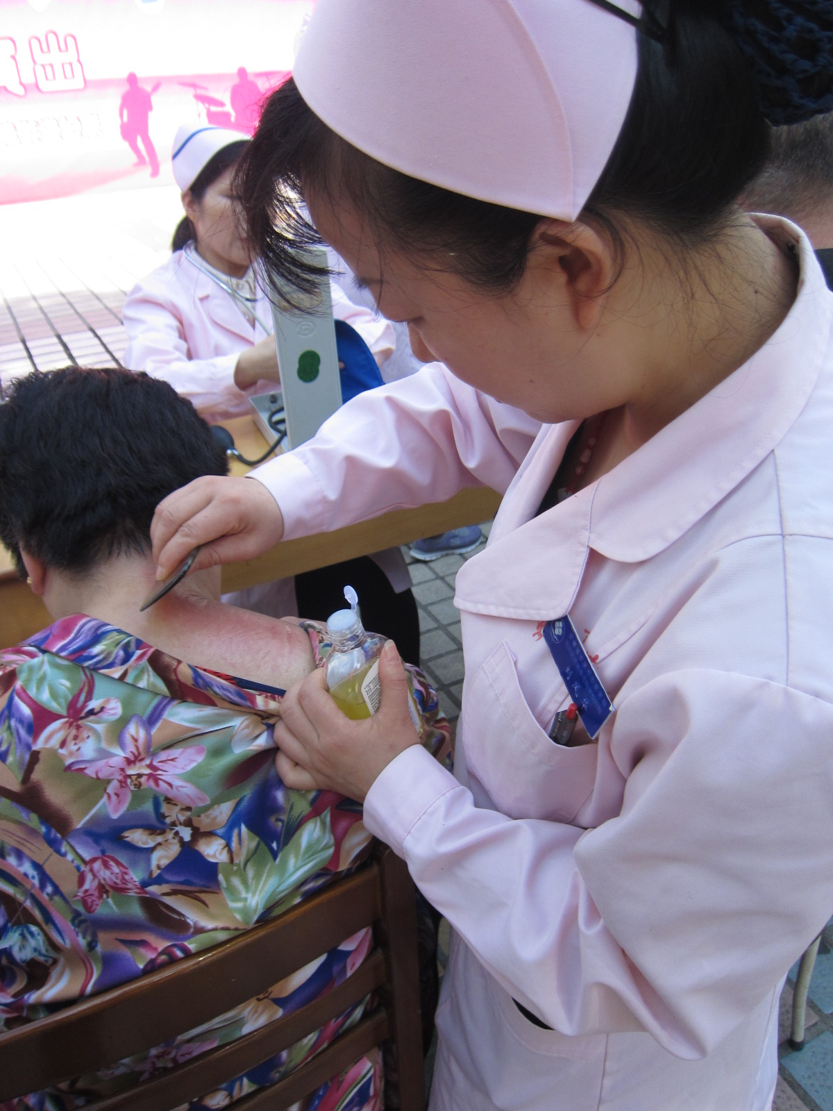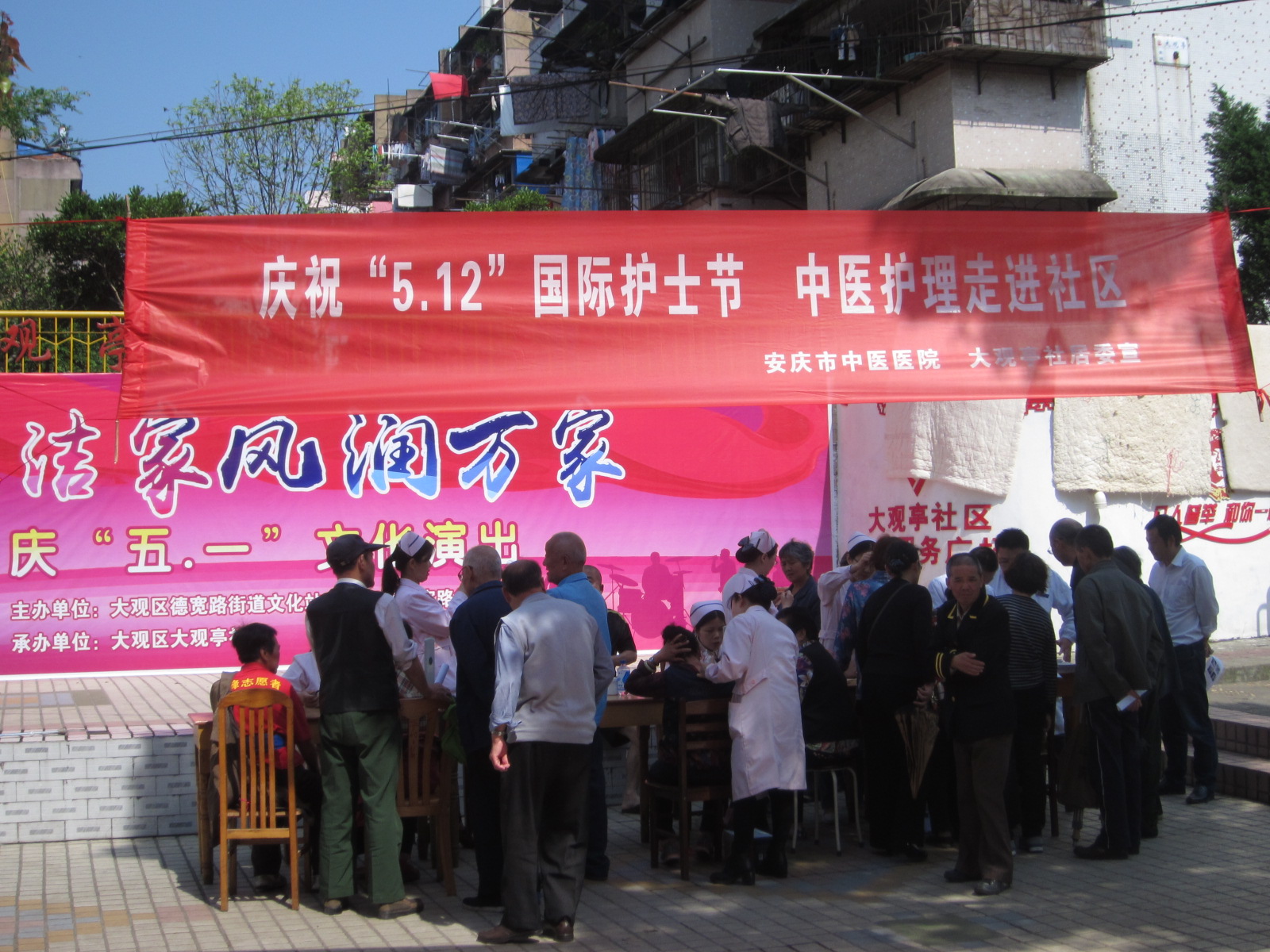 为迎接“5.12”国际护士节的到来,医院组织精干医务人员赴大观区大观亭社区义诊。活动中,医务人员为社区居民诊脉开方,宣传普及中医药养生保健知识,并让闻讯而来的居民现场免费体验拔罐、刮痧、艾灸等中医特色疗法,让他们在自家门口就能方便地获得颇有益处的中医药保健服务,以实际行动践行“南丁格尔精神”,受到社区居民的普遍欢迎。
