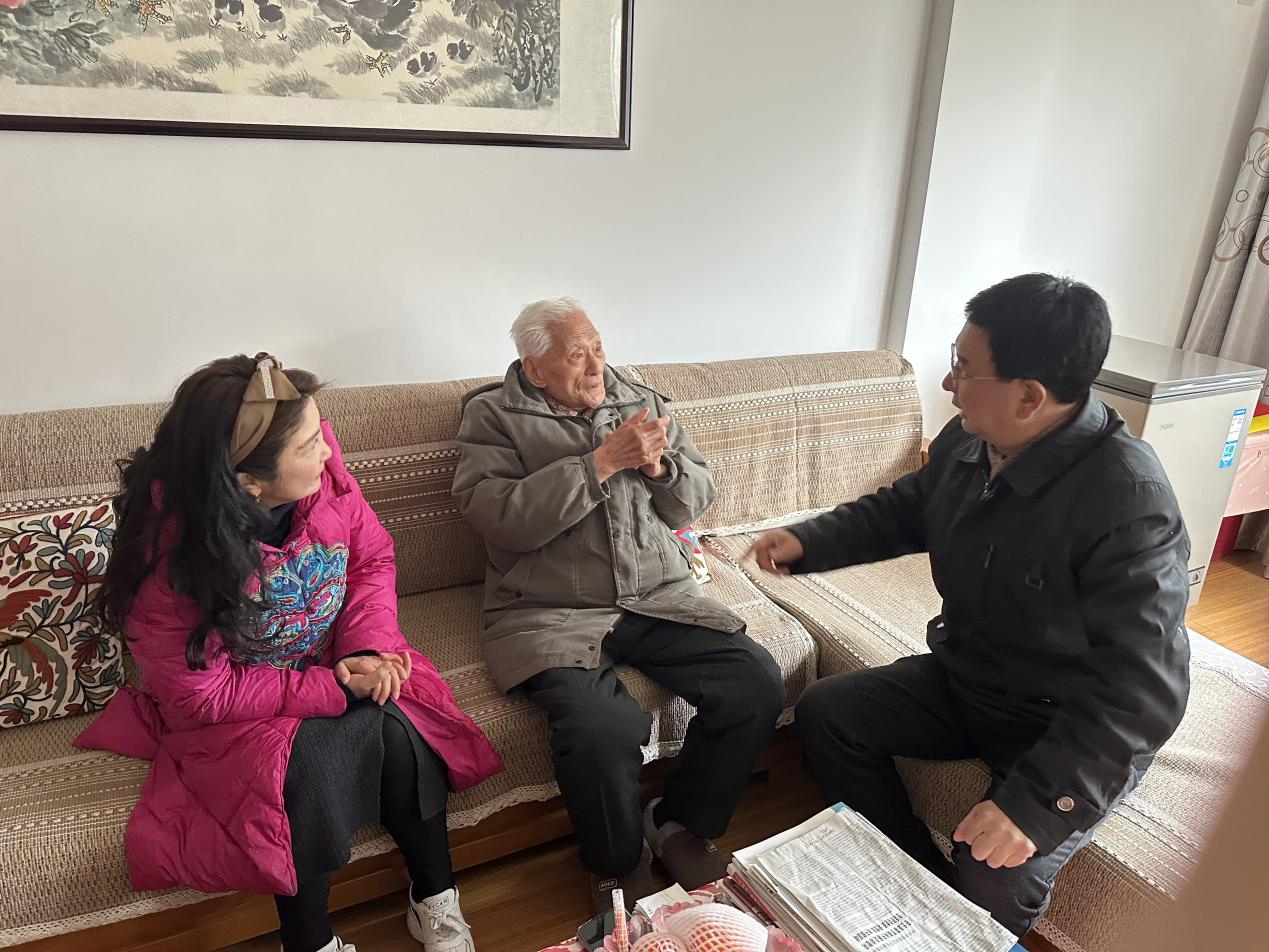 在老同志吴良松的家中,院领导代表医院送上节日慰问金和礼品,与他促膝谈心,详细询问身体状况、家庭生活情况和存在的困难。