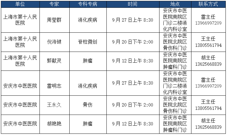 【医讯】9月上海专家团来院坐诊公告