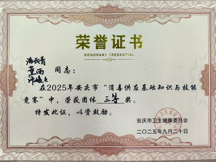 为持续精进消毒供应中心人员专业技能,筑牢医院感染防控安全防线,近日,安庆市中医医院组队参加了由安庆市卫健委主办的“安庆市消毒供应竞赛”。三名参赛选手凭借深厚的理论积淀与精湛的实操技艺,获“智慧讲堂”环节二等奖、团体三等奖。